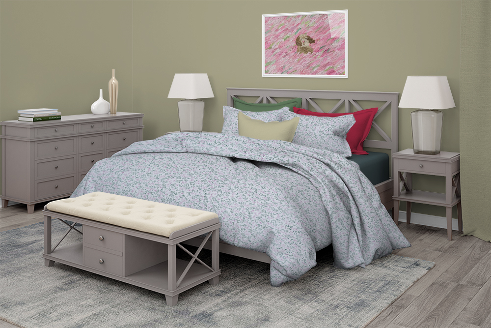 Бязь набивная 220 Ив 120 г/м.кв Букет на фиолетовом