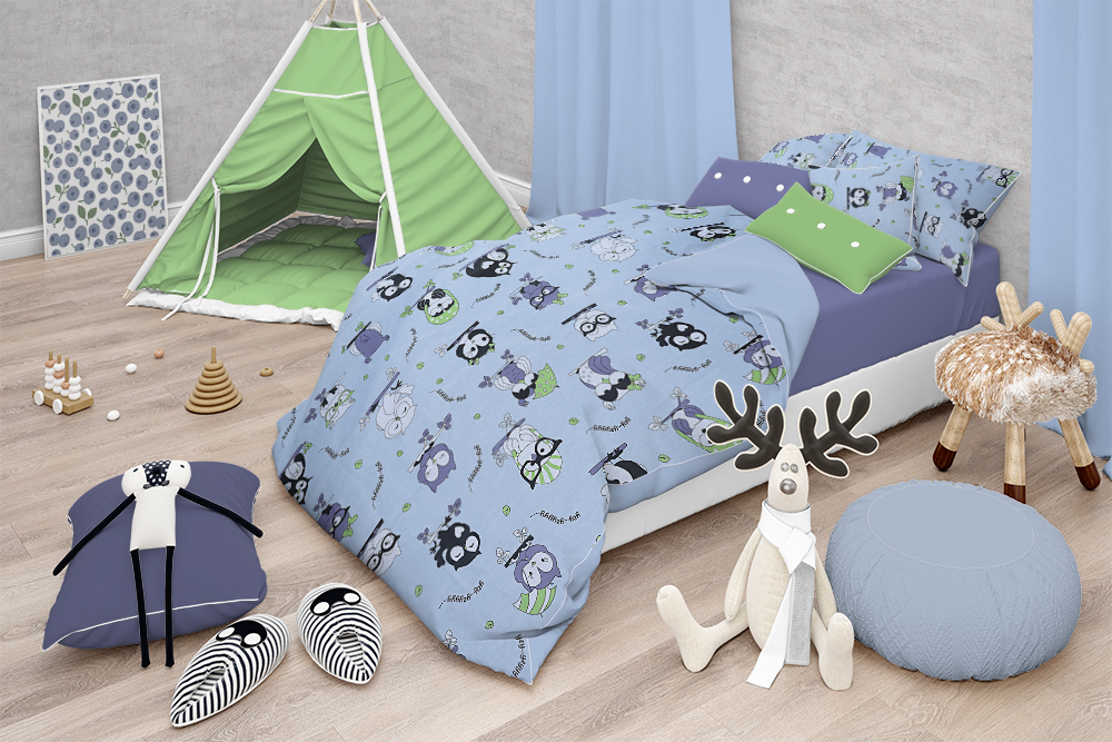 Бязь набивная 150 Ив 120 гр/м.кв. Совы на серо-голубом