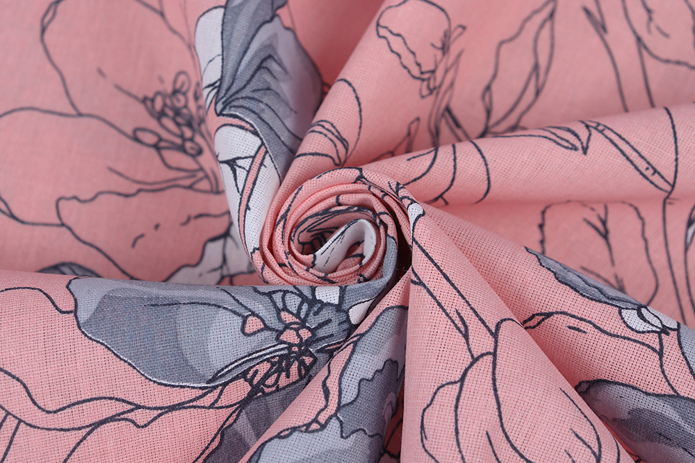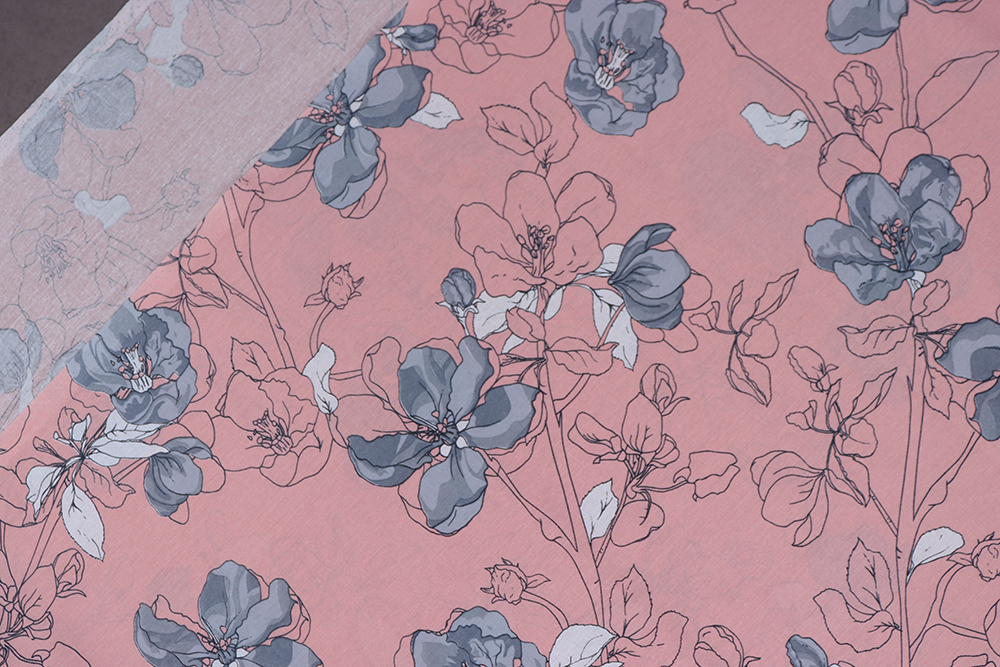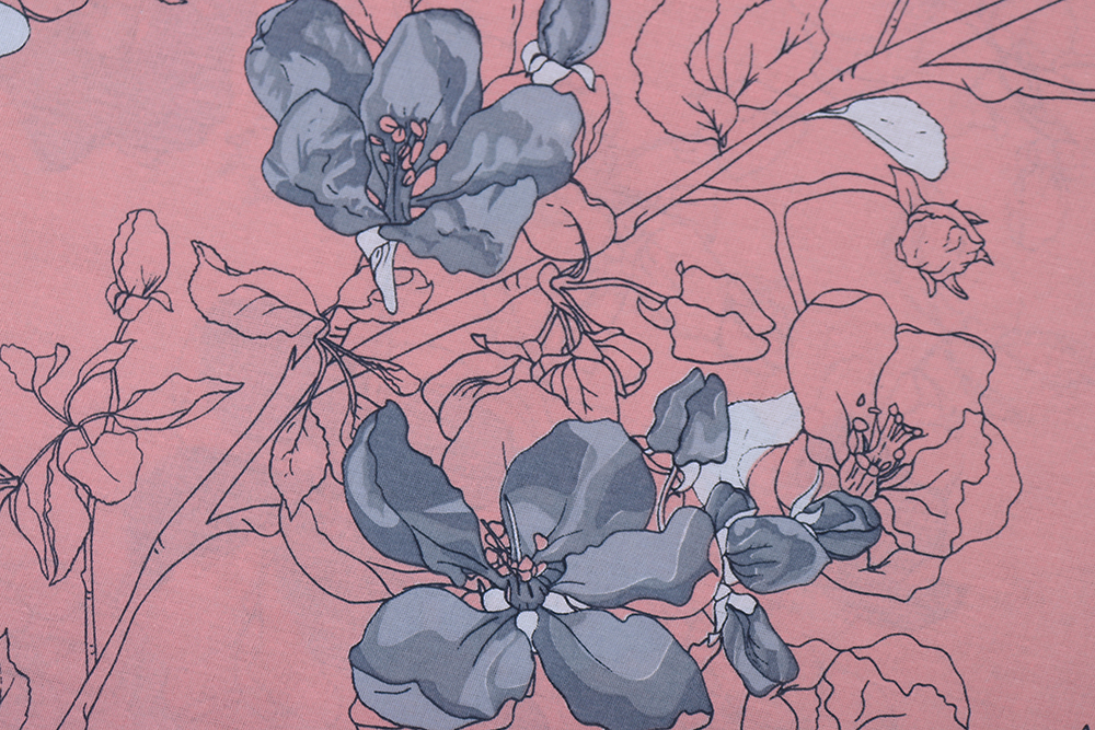 Бязь набивная 220 Ив 120 г/м.кв Сакура на пудровом