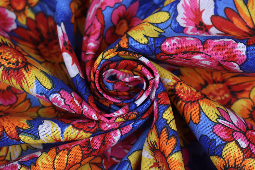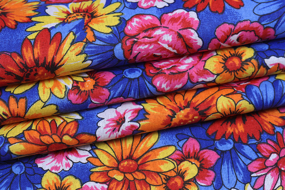 Бязь набивная 262 Ив 120 гр/м.кв. Розово-оранжевые цветы
