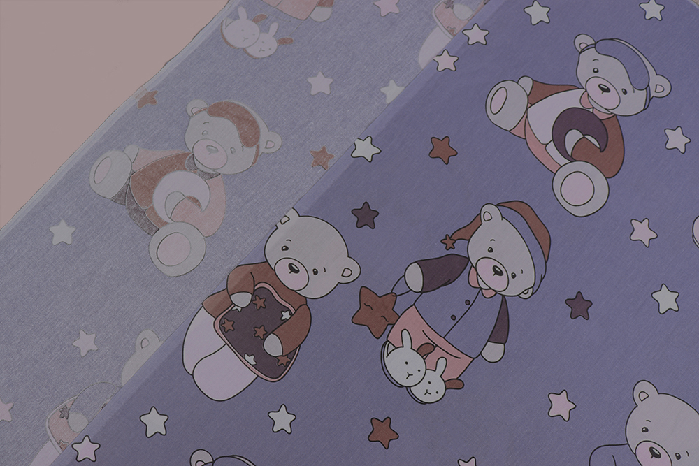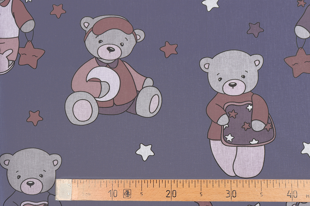 Поплин набивной 150 Мишки на серо-синем