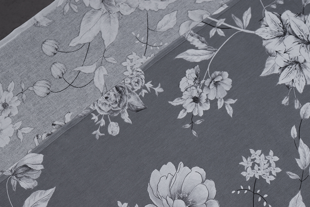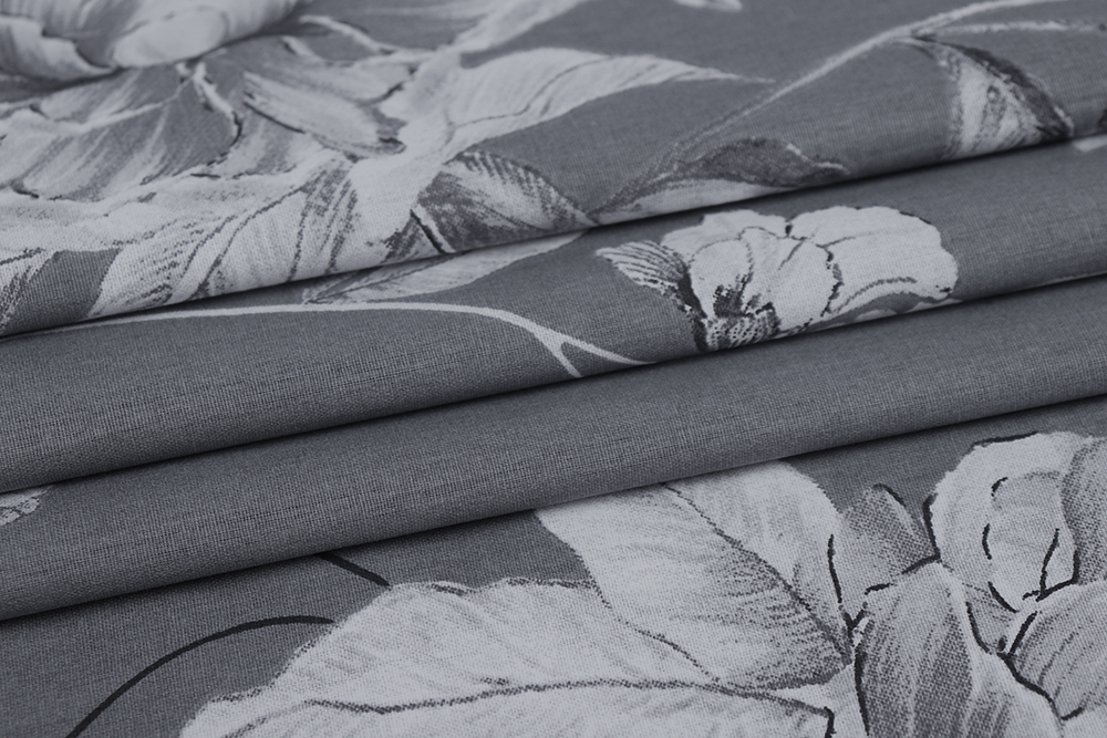Поплин набивной 220 115гр/м.кв. Цветы на сером