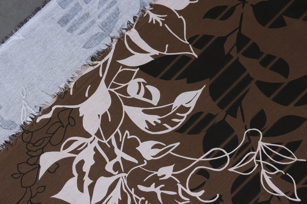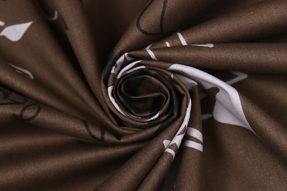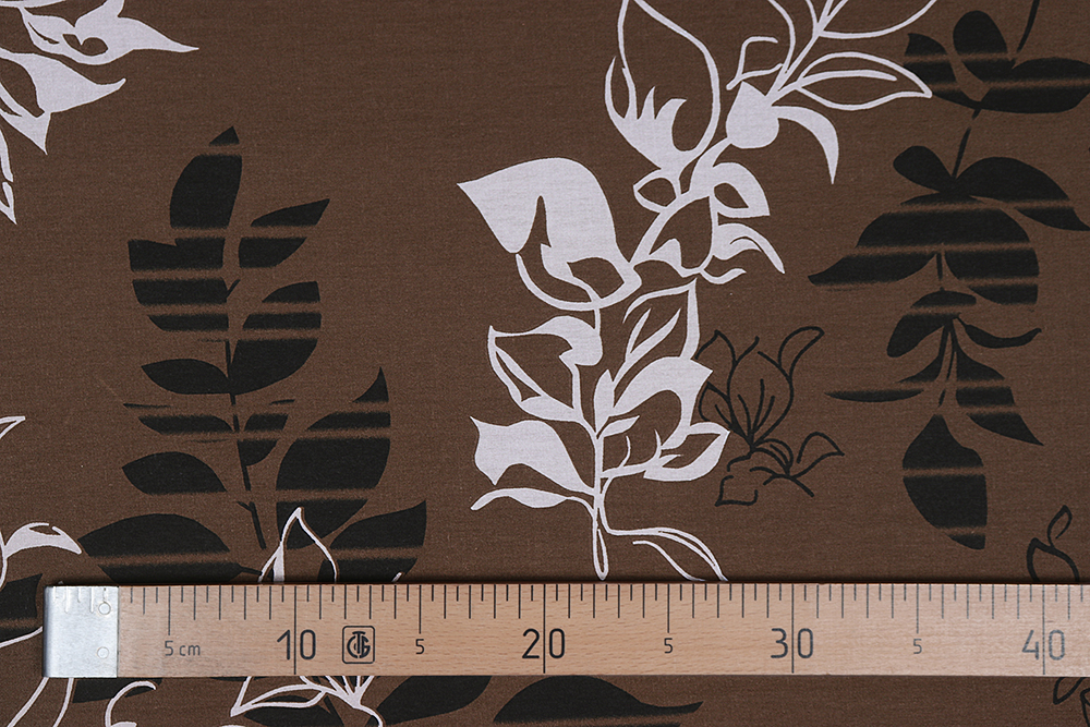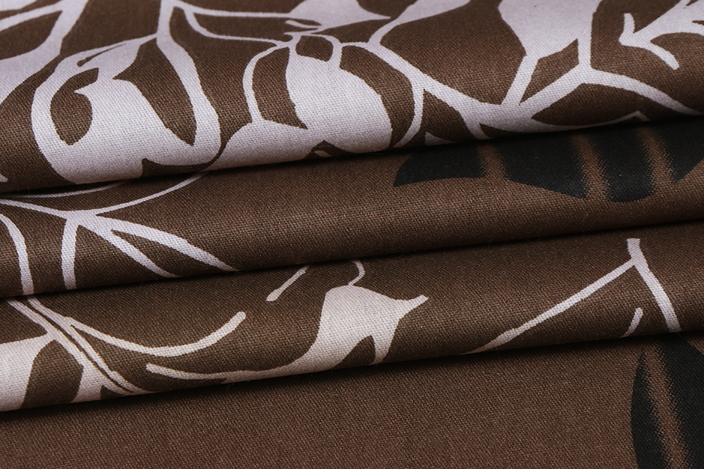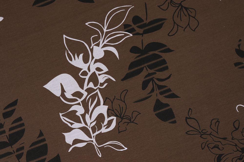 Сатин набивной 220 Листва на коричневом