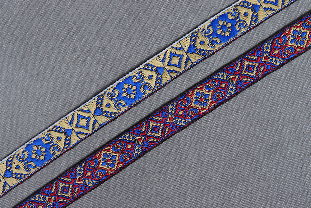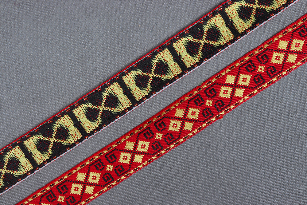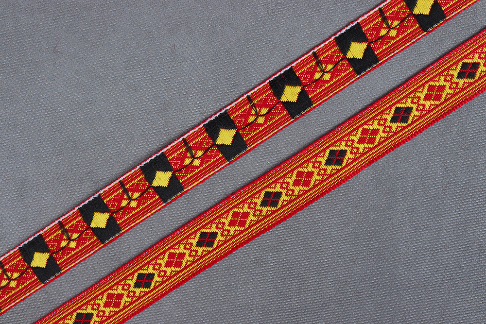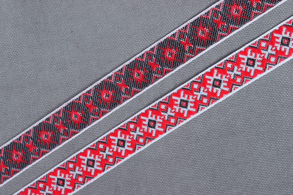 Лента 17мм жаккардовая 9651 Славянский орнамент Оберег Красный/белый/черный