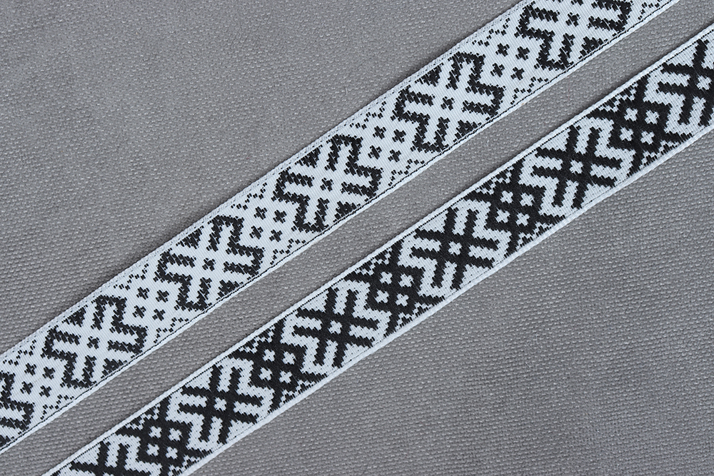Лента 17мм жаккардовая 9669 Славянский орнамент Оберег Белый/черный