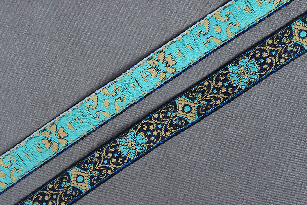 Лента 23мм жаккардовая 9016 Серебряные цветы на белом