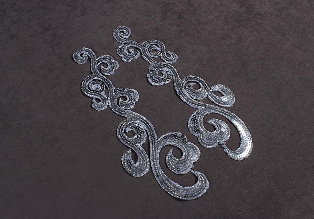 Термоаппликация с пайетками Орнамент Серебро 8661