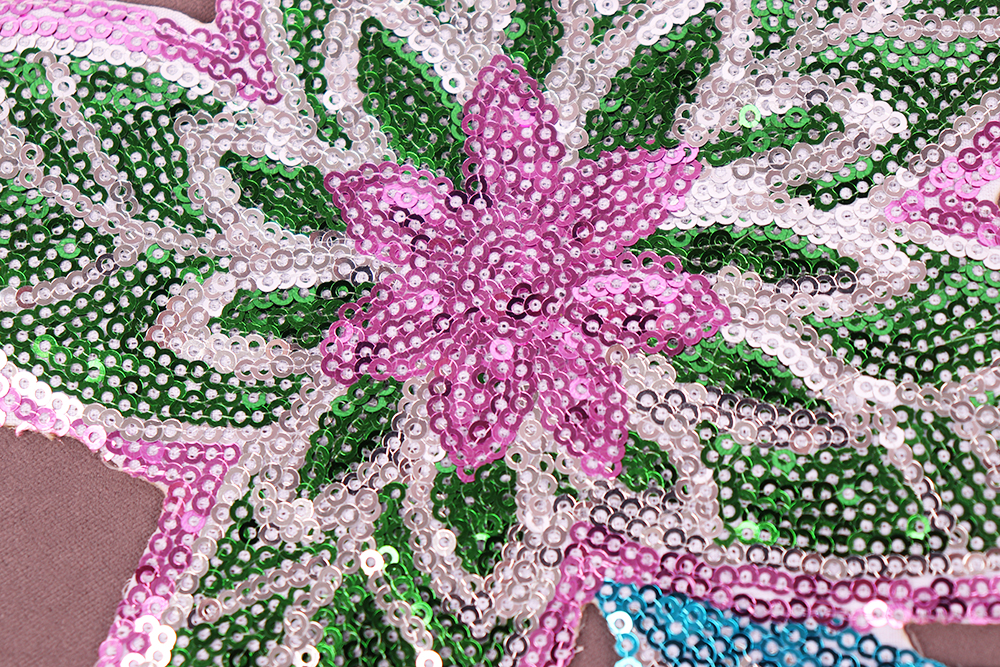 Термоаппликация с пайетками Цветок Розовый/голубой/зеленый 9203