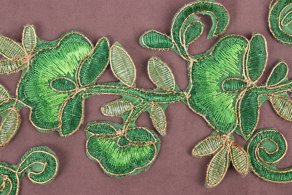 Термоаппликация Цветы с золотом Зеленый Р82