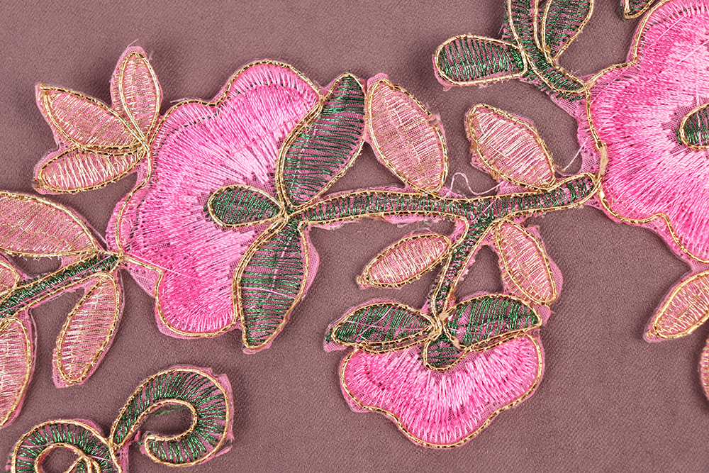 Термоаппликация Цветы с золотом Яр.Розовый Р82