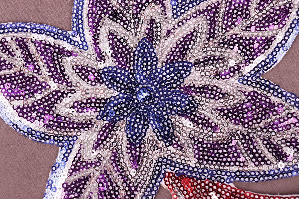 Термоаппликация с пайетками Цветок Красный/синий/фиолетовый 9203