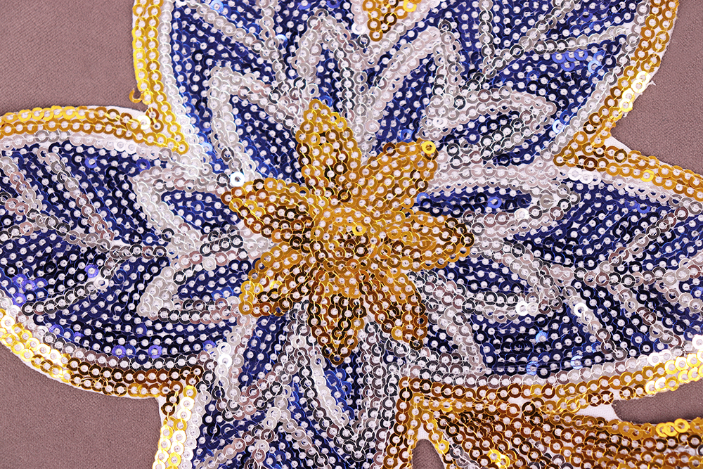 Термоаппликация с пайетками Цветок Синий/золото/серебро 9203
