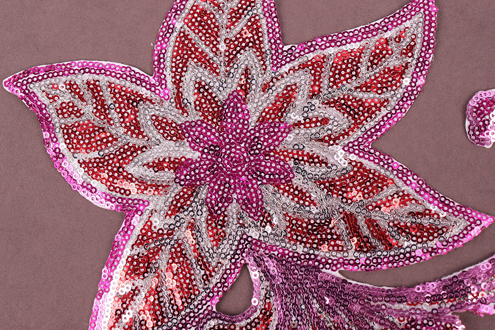 Термоаппликация с пайетками Цветок Фуксия/красный/серебро 9203