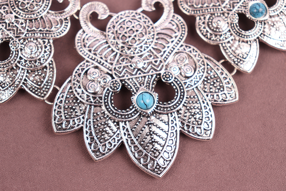 Комплект этнических украшений №118 Античное серебро/Бирюза