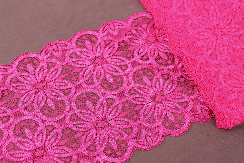 Кружево 180мм эластичное Розовый неон