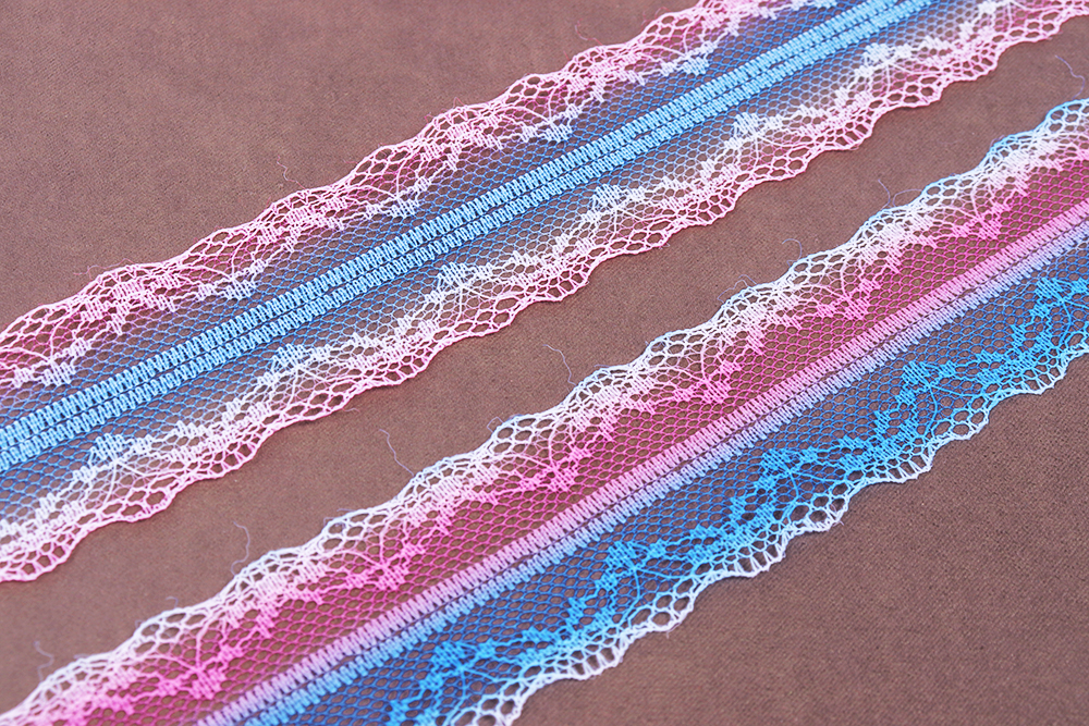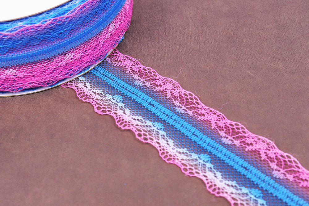 Кружево 42мм капроновое градиент Голубой/Розовый