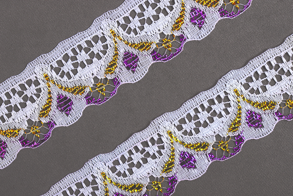 Кружево нейлон 30мм Белый/Золото/Фиолетовый