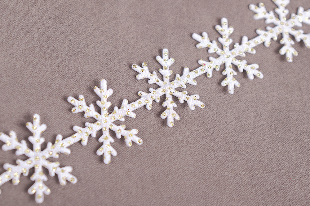 Лента декоративная фигурная 25мм Снежинки Белый/Золото