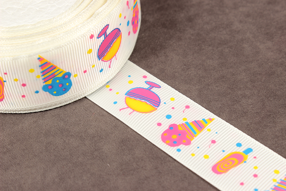 Репсовая лента с рисунком 25мм Мороженое на молочном