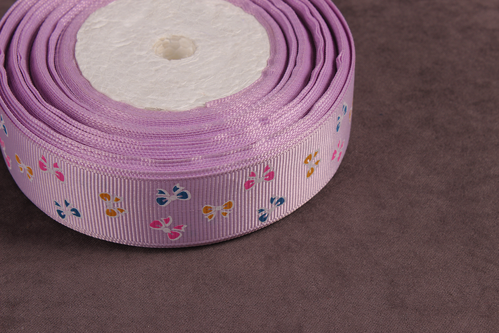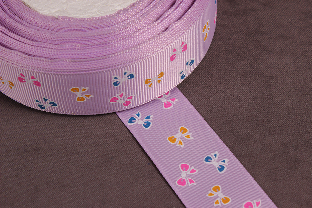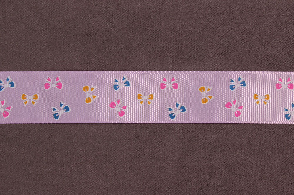 Репсовая лента с рисунком 25мм Бантики на лавандовом