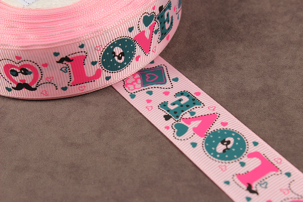 Репсовая лента с рисунком 25мм Love на св.розовом