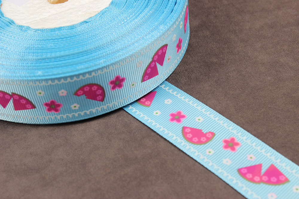 Репсовая лента с рисунком 25мм Арбузы на голубой