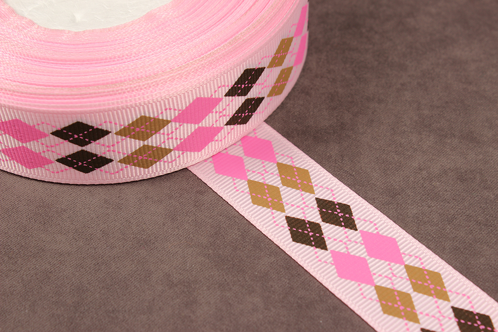 Репсовая лента с рисунком 25мм Ромбы на св.розовом