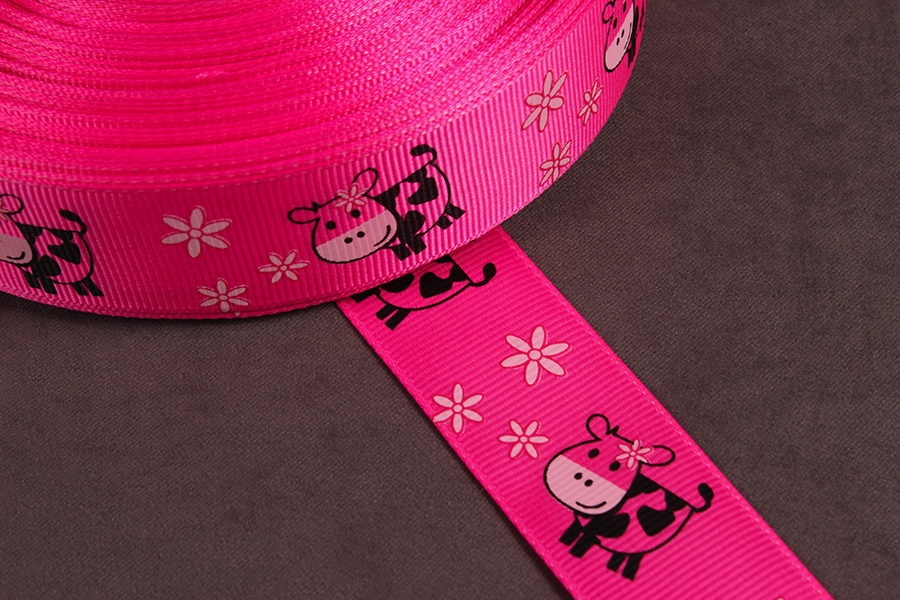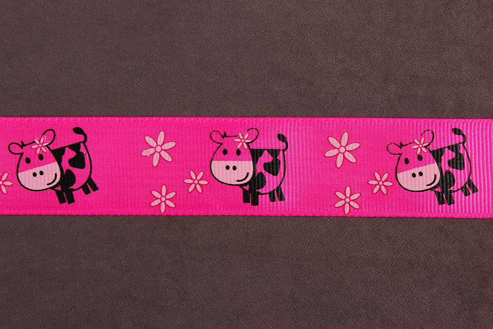 Репсовая лента с рисунком 25мм Корова Яр.розовый/черный/розовый