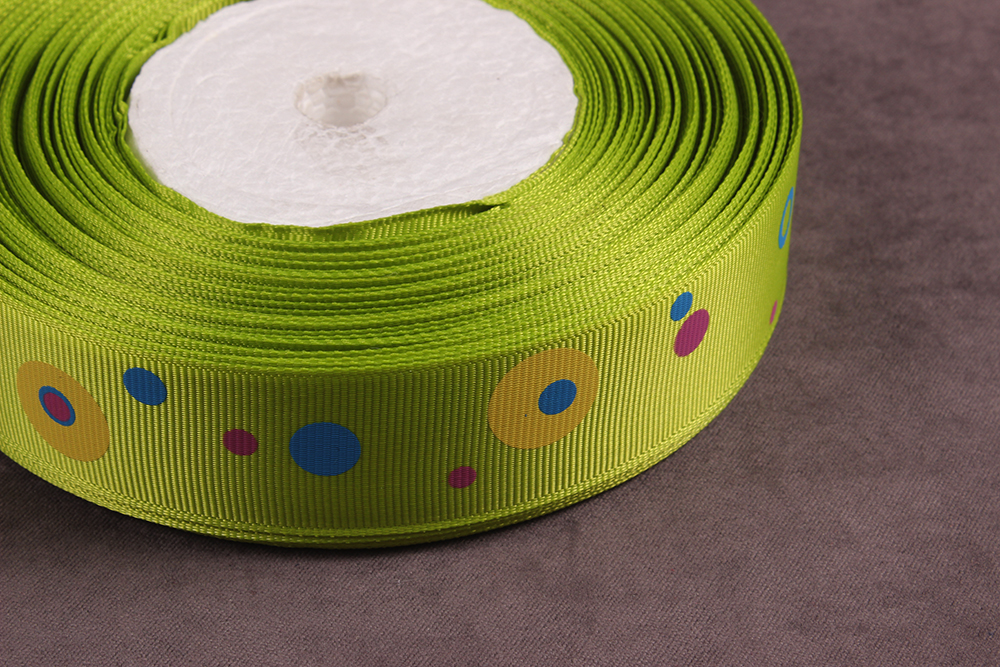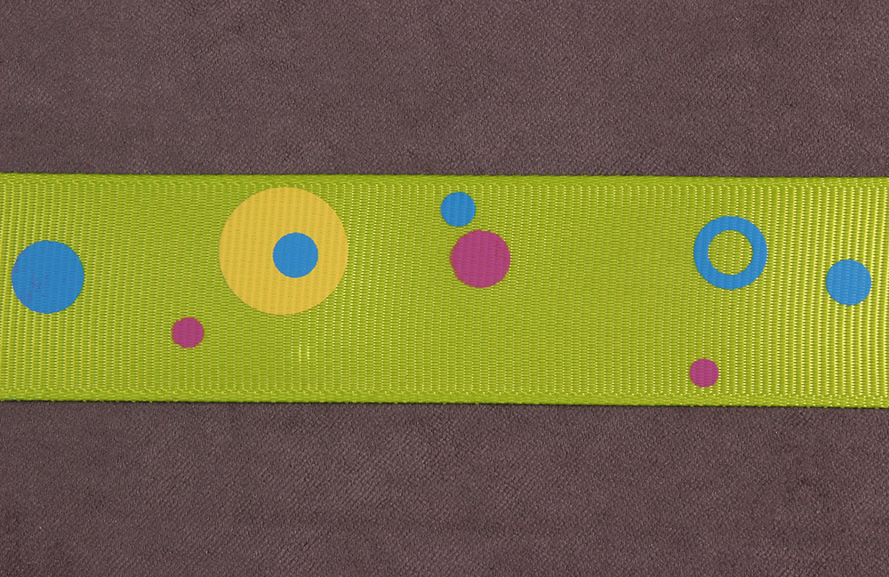 Репсовая лента с рисунком 25мм Круги Зеленый/синий/желтый/т.розовый