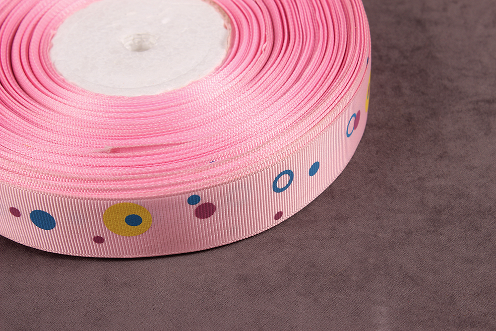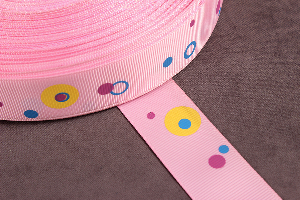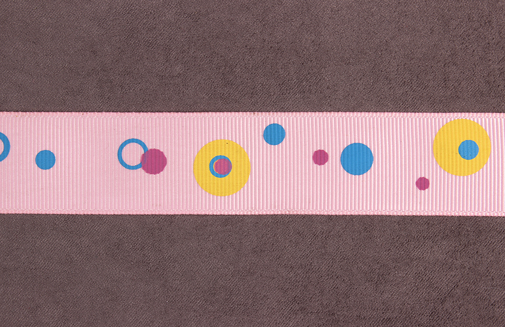 Репсовая лента с рисунком 25мм Круги Св.розовый/синий/желтый/т.розовый