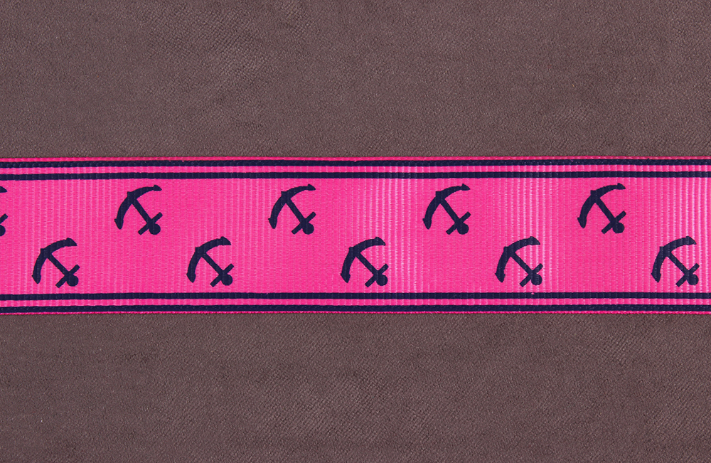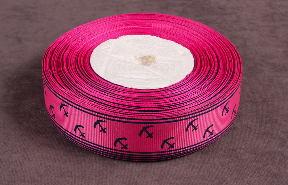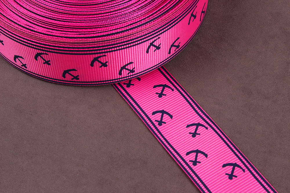 Репсовая лента с рисунком 25мм Якоря Яр.розовый/т.синий