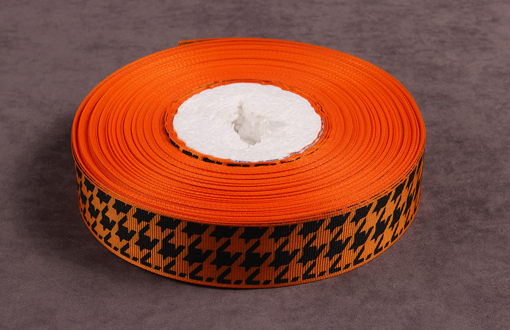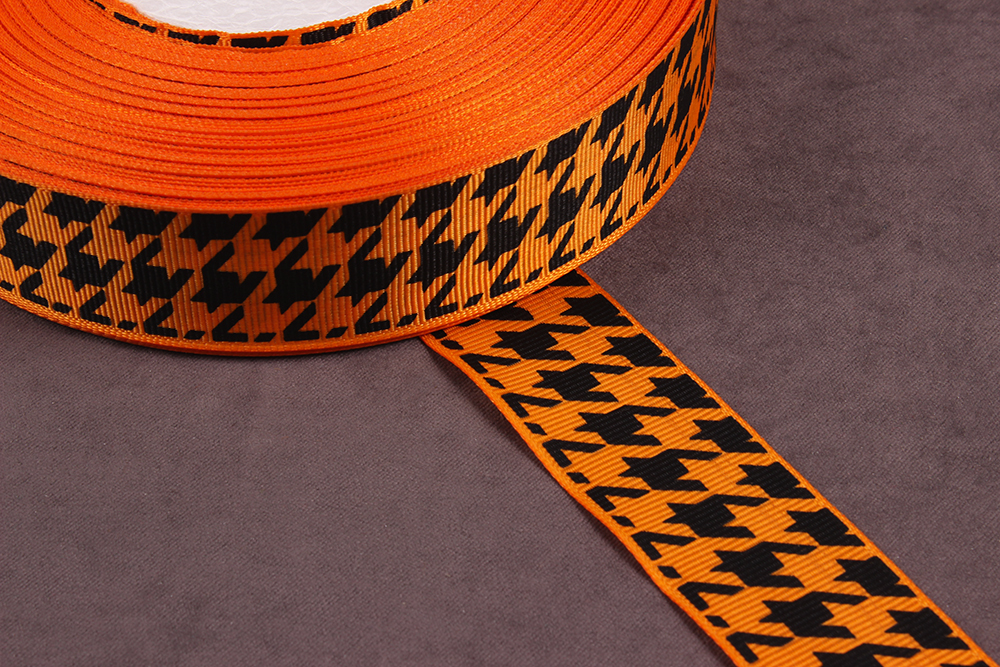 Репсовая лента с рисунком 25мм Оранжевый/черный