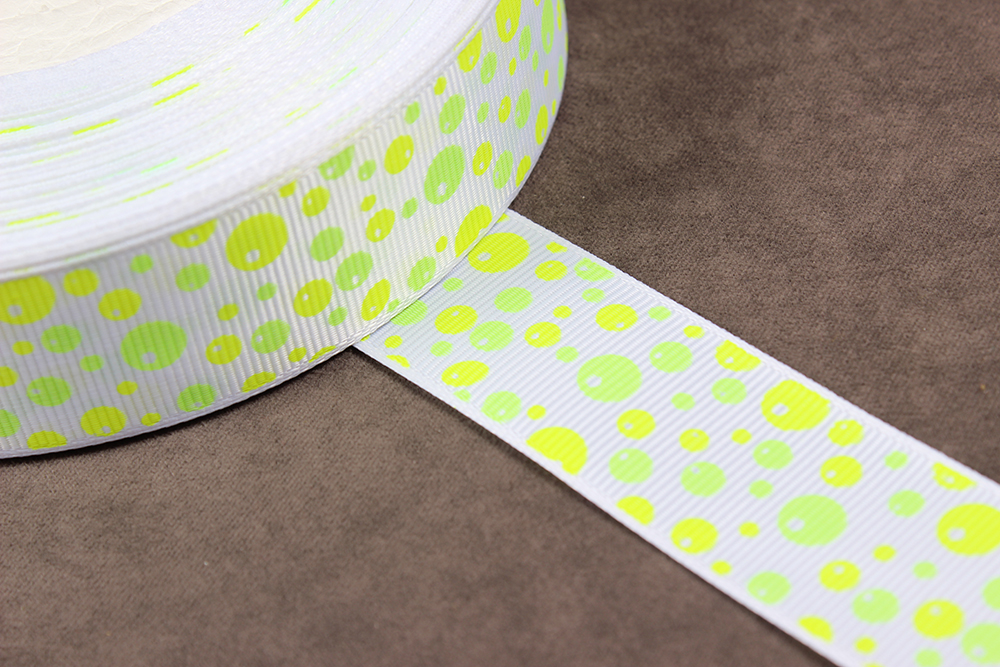 Репсовая лента с рисунком 25мм Пузыри Белый/зеленый неон/желтый неон