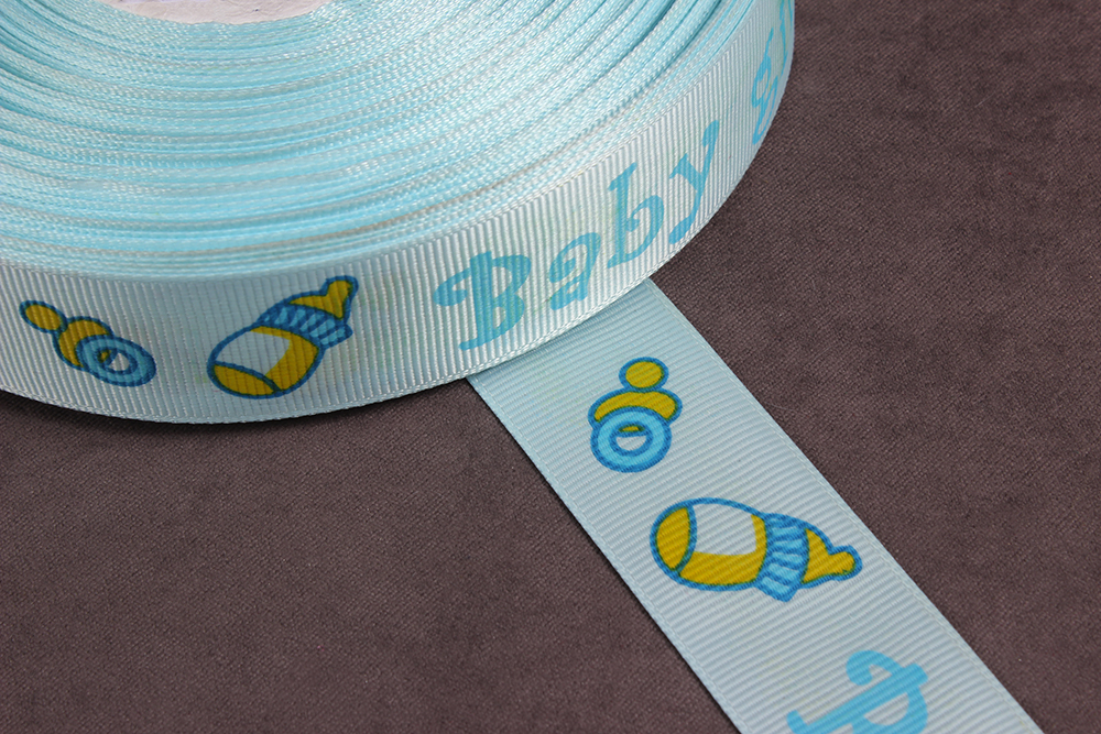 Репсовая лента с рисунком 25мм Baby girl Голубой/синий/желтый