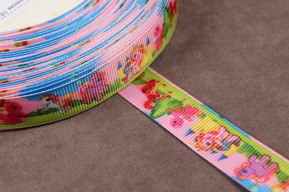 Репсовая лента с рисунком 15мм Пони Розовый/желтый/синий/зеленый/красный
