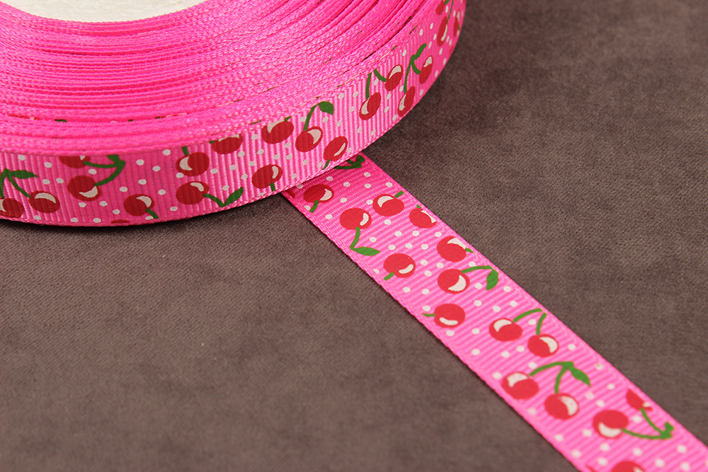 Репсовая лента с рисунком 15мм Вишенки Розовый/зеленый/красный/белый