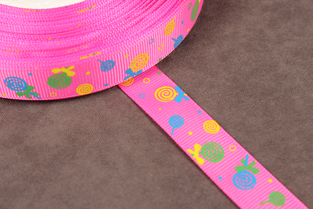 Репсовая лента с рисунком 15мм Леденец на палочке Розовый/зеленый/желтый/синий