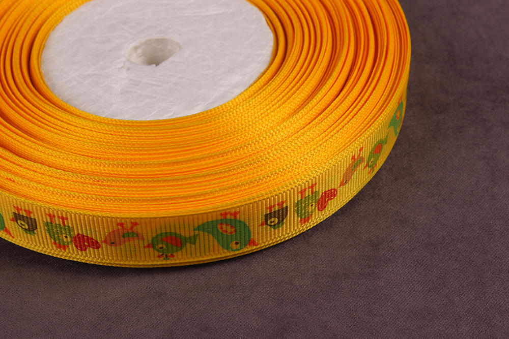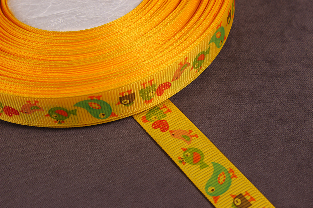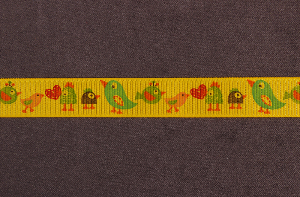 Репсовая лента с рисунком 15мм Птицы Желтый/голубой/красный/зеленый