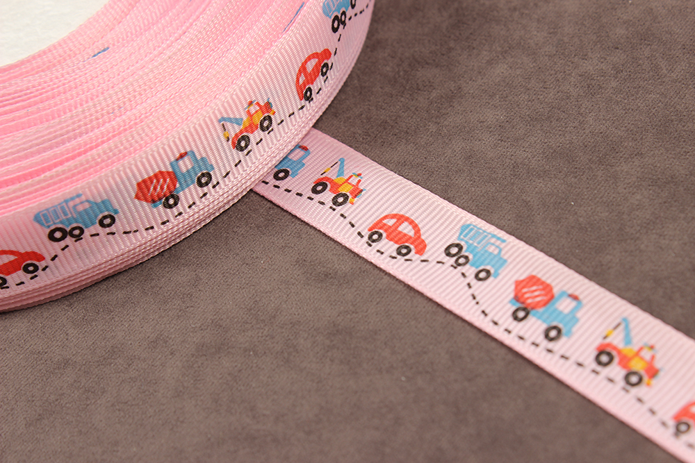 Репсовая лента с рисунком 15мм Машины Розовый/красный/голубой/черный