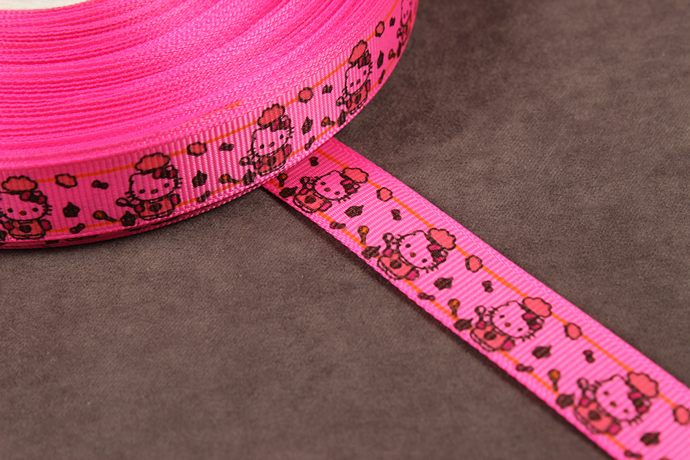 Репсовая лента с рисунком 15мм Hello Kitty Яр.розовый/оранжевый/красный/черный
