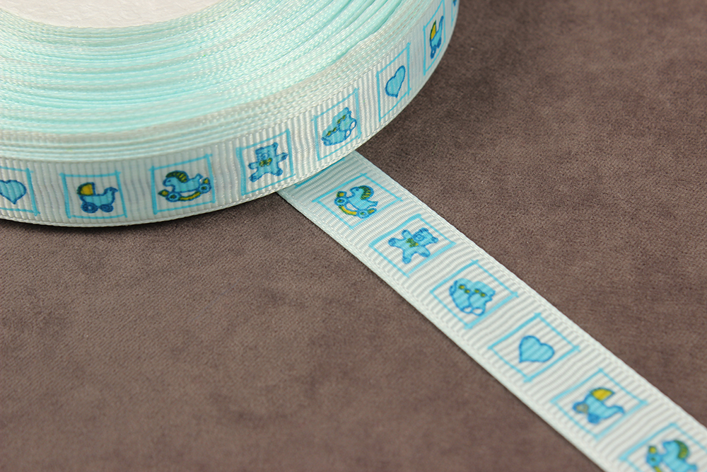 Репсовая лента с рисунком 15мм Игрушки Св.голубой/голубой/синий/желтый