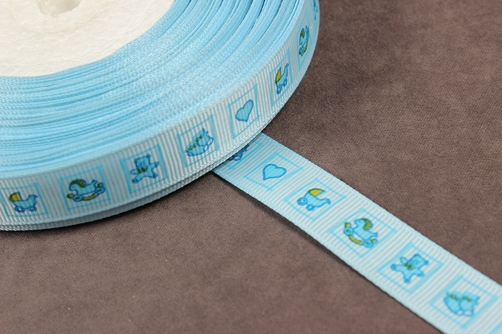 Репсовая лента с рисунком 15мм Игрушки Голубой/синий/желтый