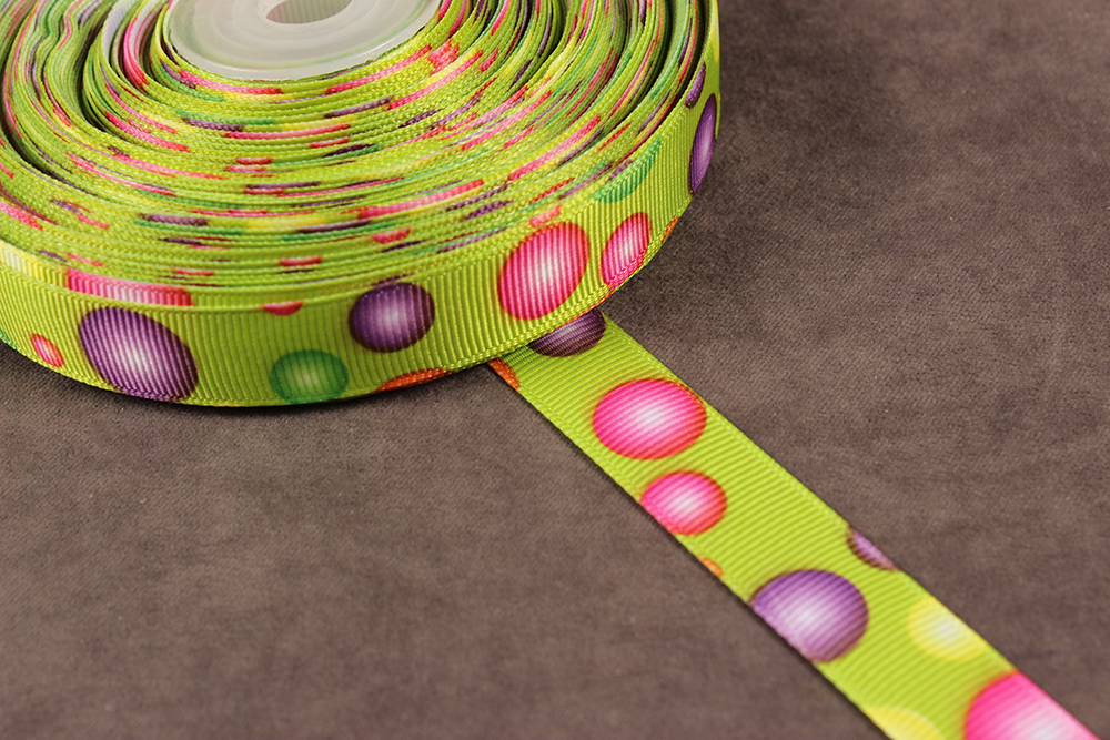 Репсовая лента с рисунком 15мм Пузыри Св.зеленый/желтый/розовый/зеленый/фиолетовый