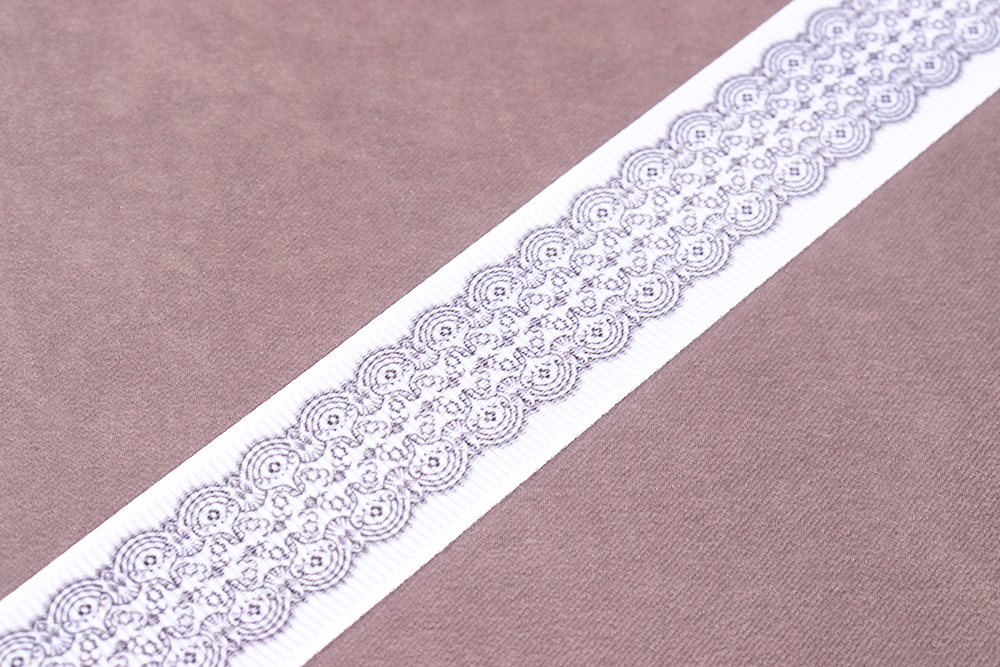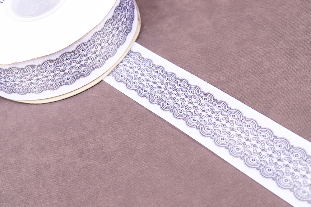 Репсовая лента 25мм с рисунком Кружево Белый/Серый