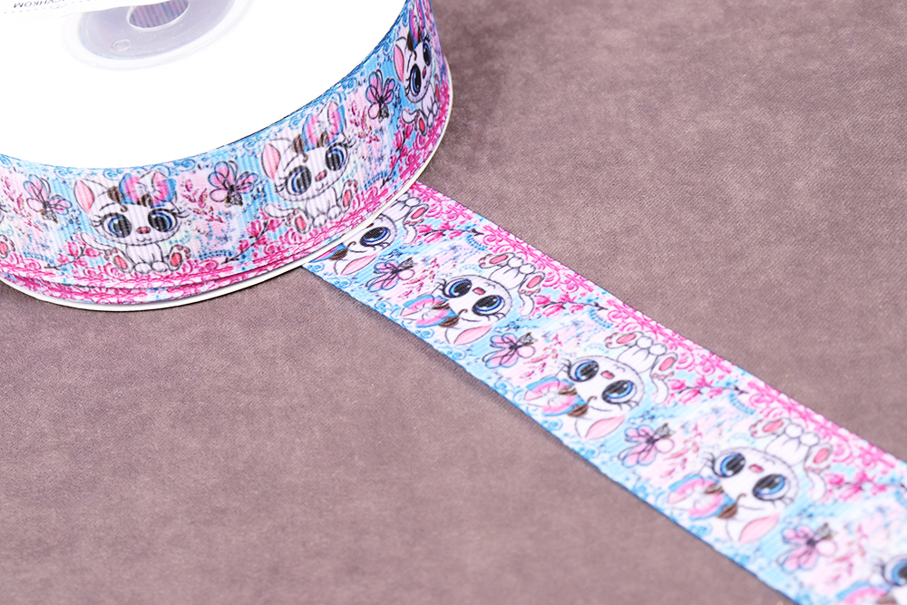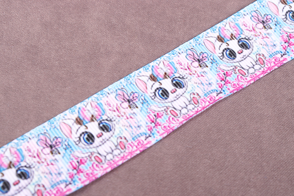 Репсовая лента 25мм с рисунком Котенок Розовый/Голубой