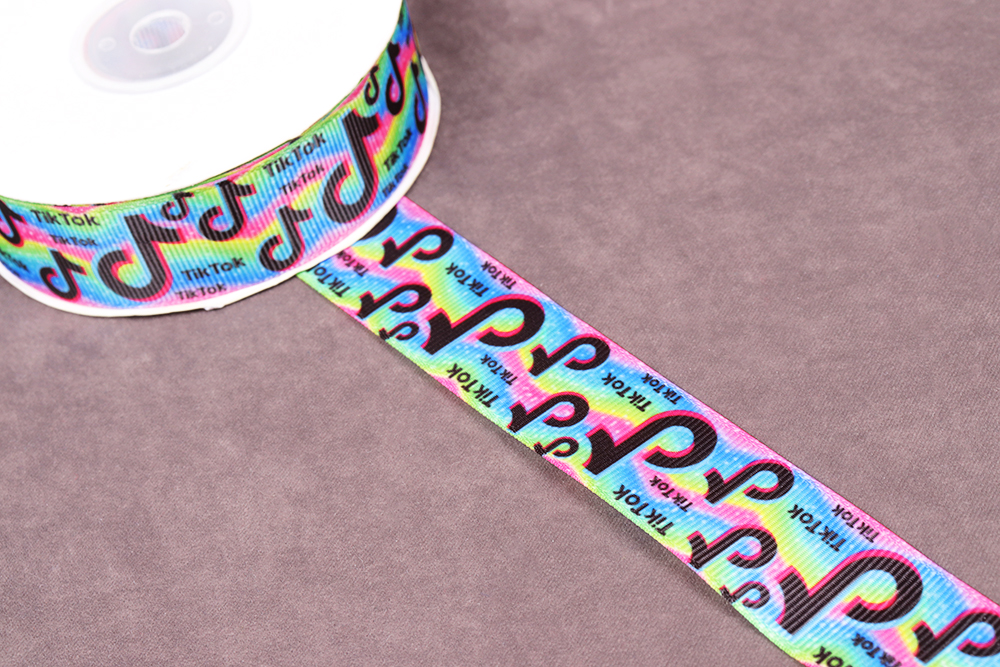 Репсовая лента 25мм с рисунком Tik и Tok Черный/Розовый/Зеленый/