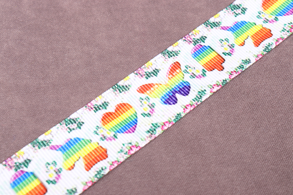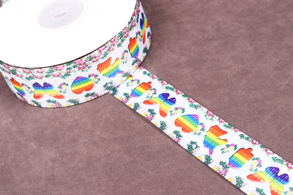 Репсовая лента 25мм с рисунком Pop lt Белый/Красный/Синий/Желтый