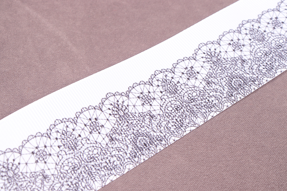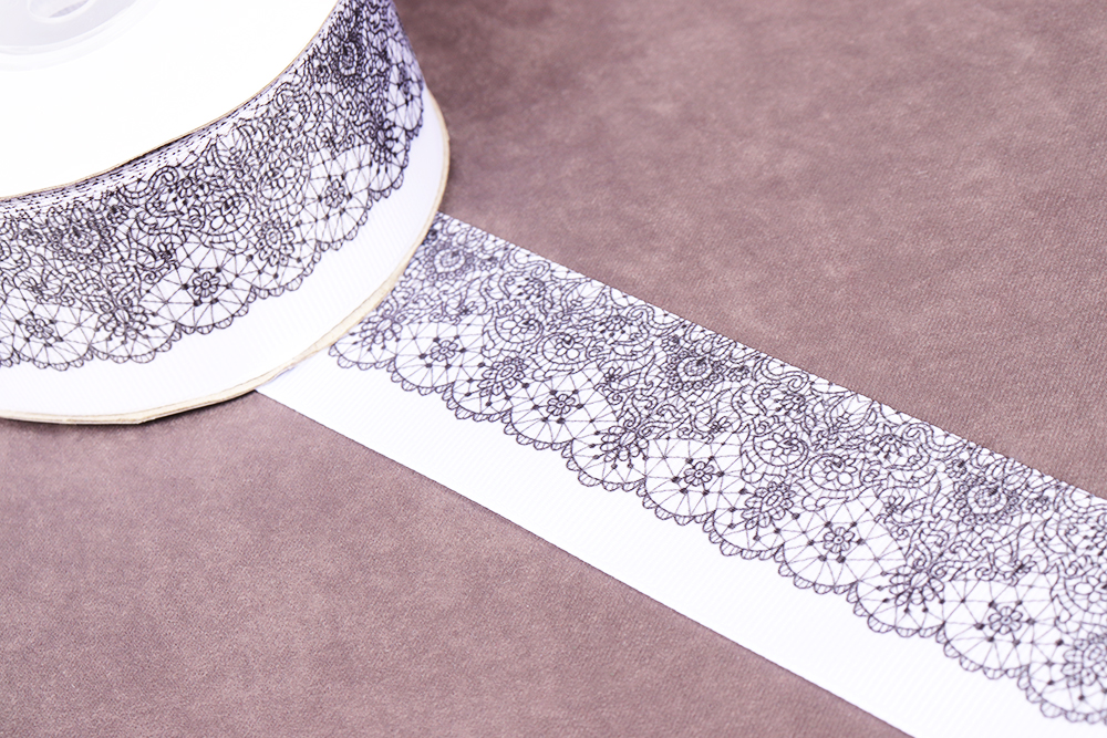 Репсовая лента 40мм Кружево Т.Серый/Белый