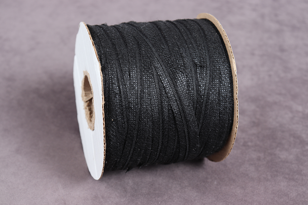 Лента клеевая 12мм нитепрошивная по косой с тесьмой Черный