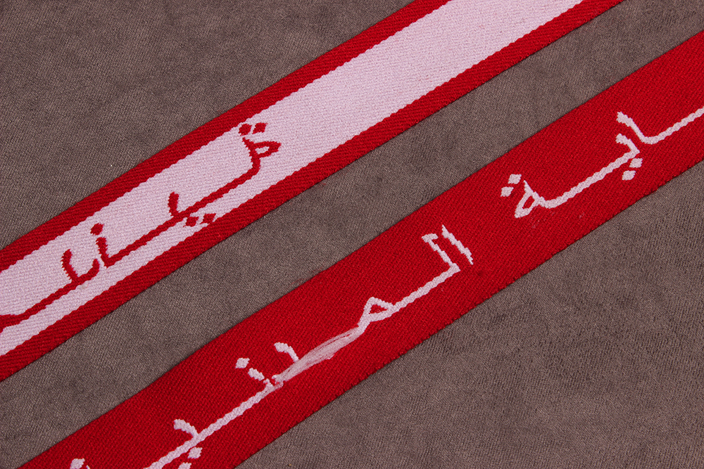 Тесьма эластичная 25мм Арабская надпись Красный/белый